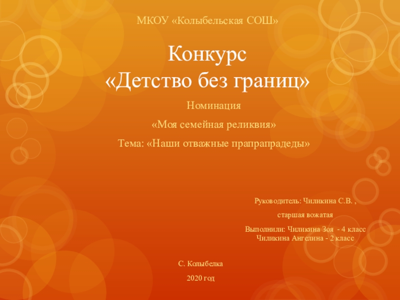 Выполнили: Чиликина Зоя - 4 класс Чиликина Ангелина - 2 класс