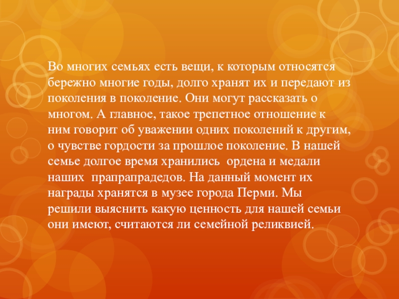 Оно представляет ценность и главное память для всей семьи и связывает разные поколения одной историей.