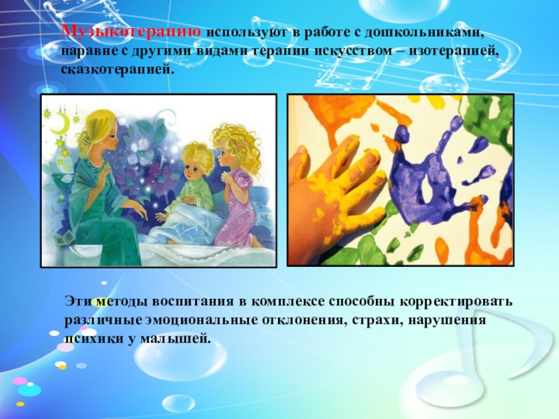 Эти методы воспитания в комплексе способны корректировать различные эмоциональные отклонения, страхи, нарушения психики у малышей.