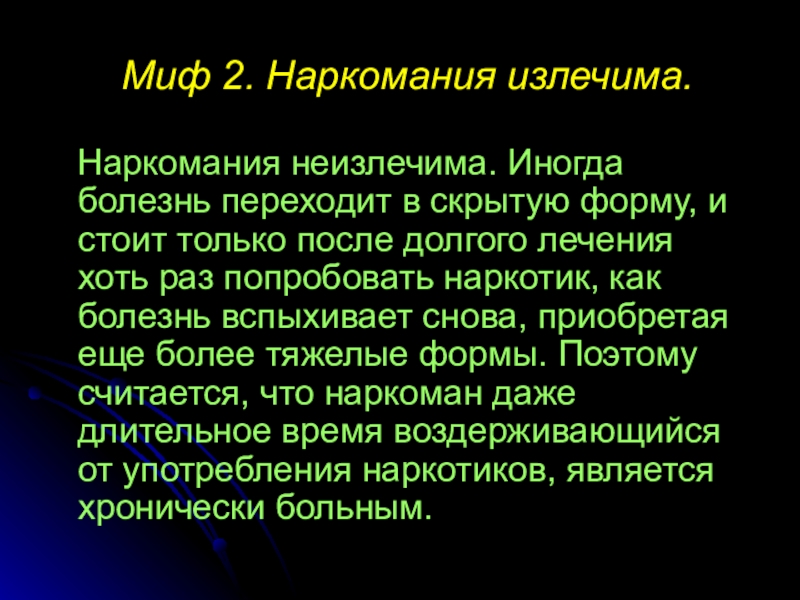 Слайд 12Наиболее распространенные мифы о наркотиках.