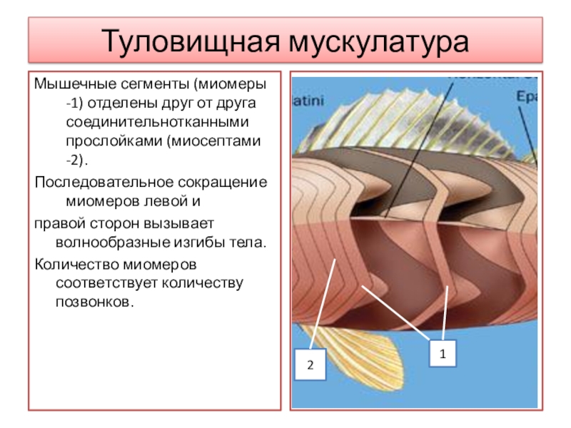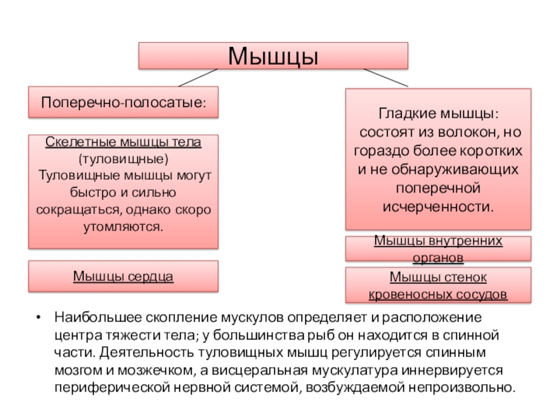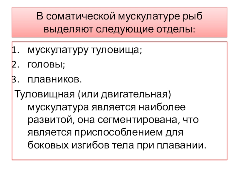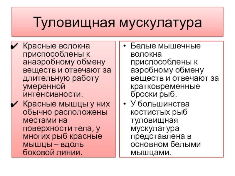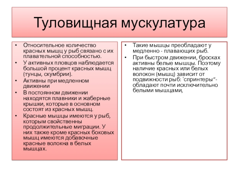 Такие мышцы преобладают у медленно - плавающих рыб.