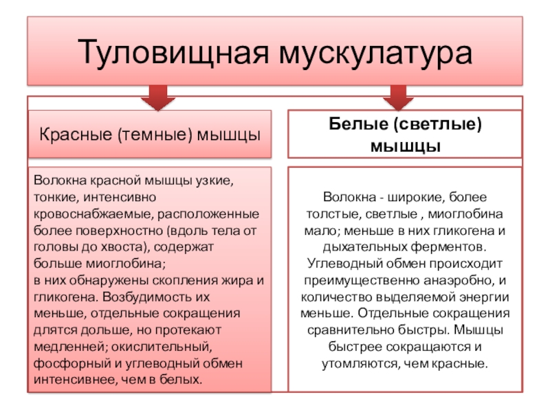 Белые мышечные волокна приспособлены к аэробному обмену веществ и отвечают за кратковременные броски рыб.