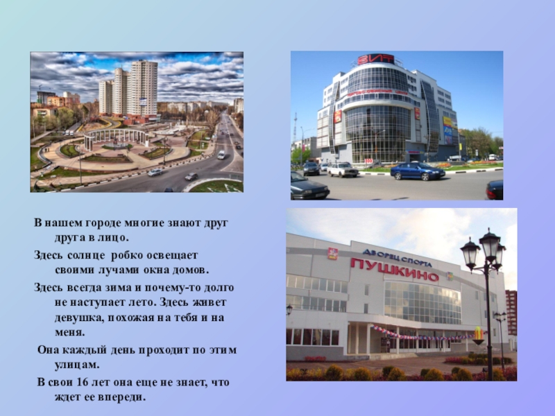 Слайд 2В нашем городе многие знают друг друга в лицо.