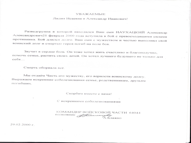 Презентация №2 к Уроку памяти, посвященному 73-й годовщине Освобождения Сакского района, и герою – односельчанину, погибшему в борьбе с террористами в Чечне. Жизнь, достойная песни Разное