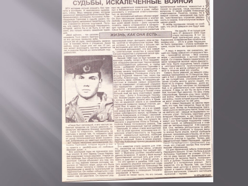 Презентация, доклад №2 к Уроку памяти, посвященному 73-й годовщине Освобождения Сакского района, и герою – односельчанину, погибшему в борьбе с террористами в Чечне. Жизнь, достойная песни