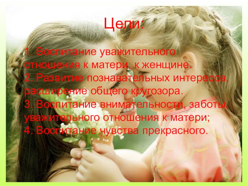 1. Воспитание уважительного отношения к матери, к женщине.