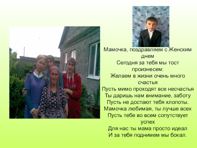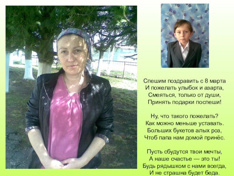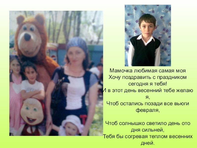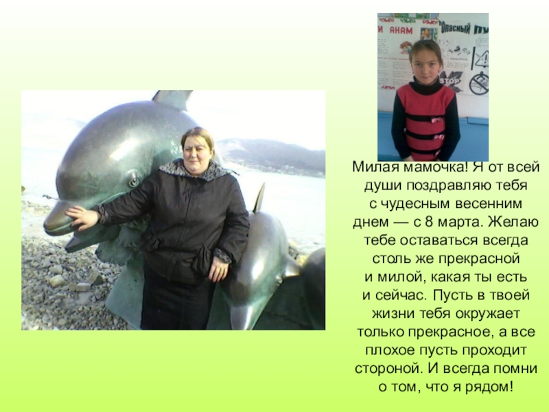Милая мамочка! Я от всей души поздравляю тебя с чудесным весенним днем — с