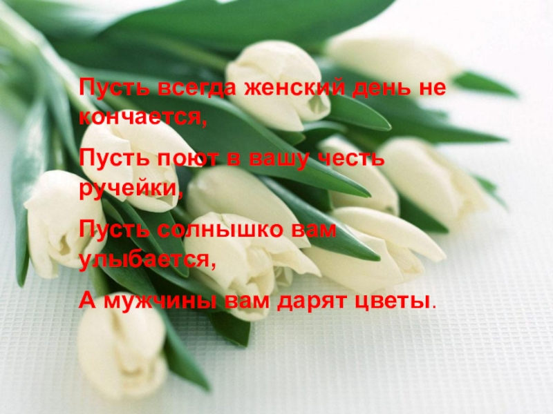 Слайд 30Пусть всегда женский день не кончается,