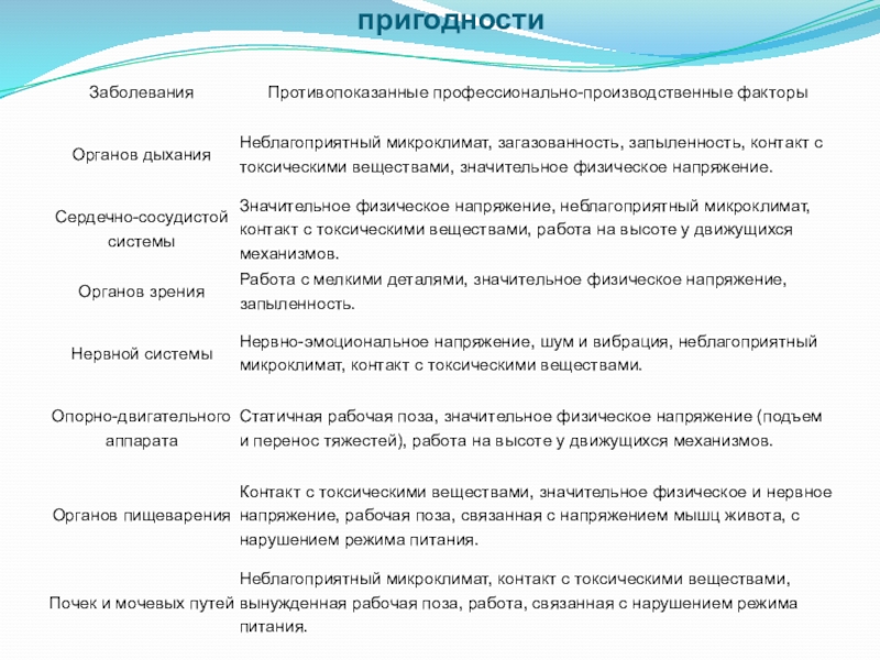 Слайд 6Медицинские ограничения профессиональной пригодности