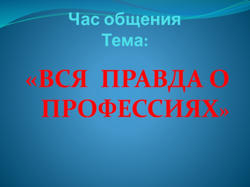 Час общения  Тема: «ВСЯ ПРАВДА О ПРОФЕССИЯХ»