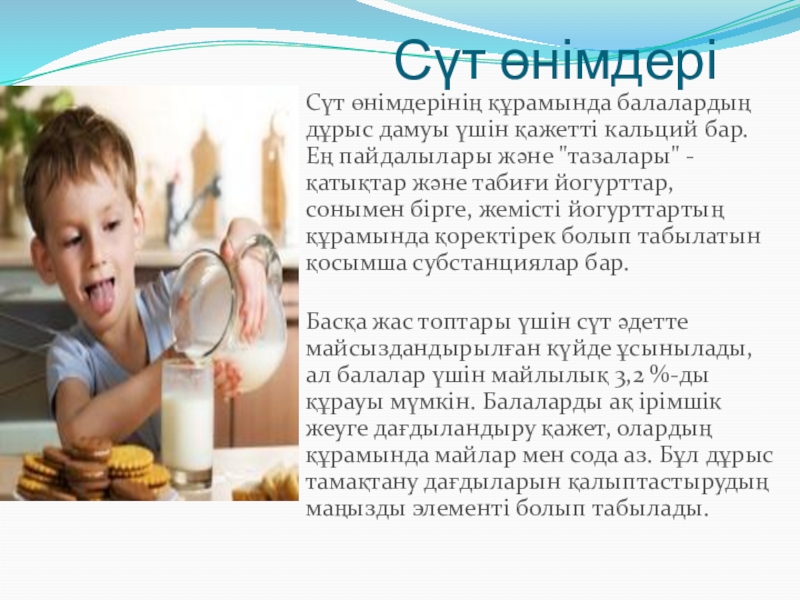 Сүт өнімдерінің құрамында балалардың дұрыс дамуы үшін қажетті кальций бар.