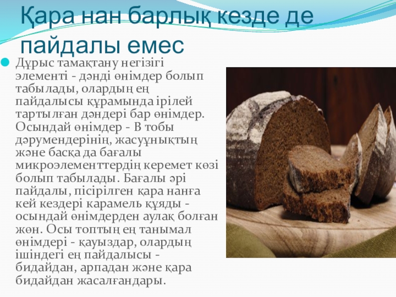 Слайд 6Қара нан барлық кезде де пайдалы емес