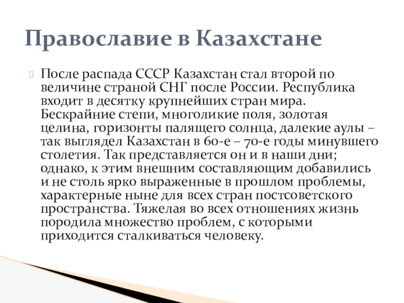Слайд 32После распада СССР Казахстан стал второй по величине страной СНГ после