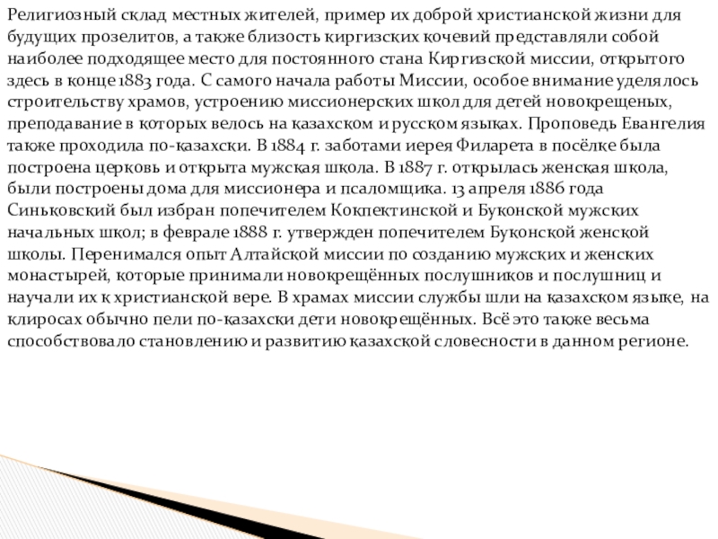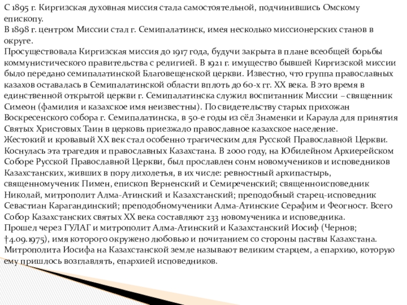 Слайд 30С 1895 г. Киргизская духовная миссия стала самостоятельной, подчинившись Омскому епископу.