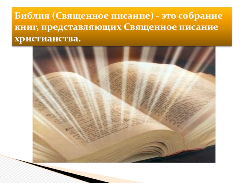 Слайд 4Библия (Священное писание) - это собрание книг, представляющих Священное писание христианства.
