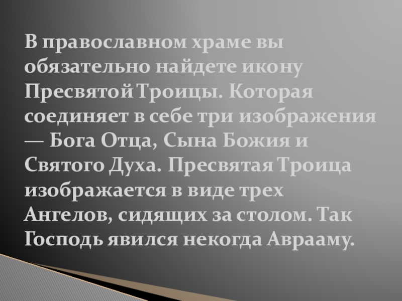 Слайд 8В православном храме вы обязательно найдете икону Пресвятой Троицы. Которая соединяет