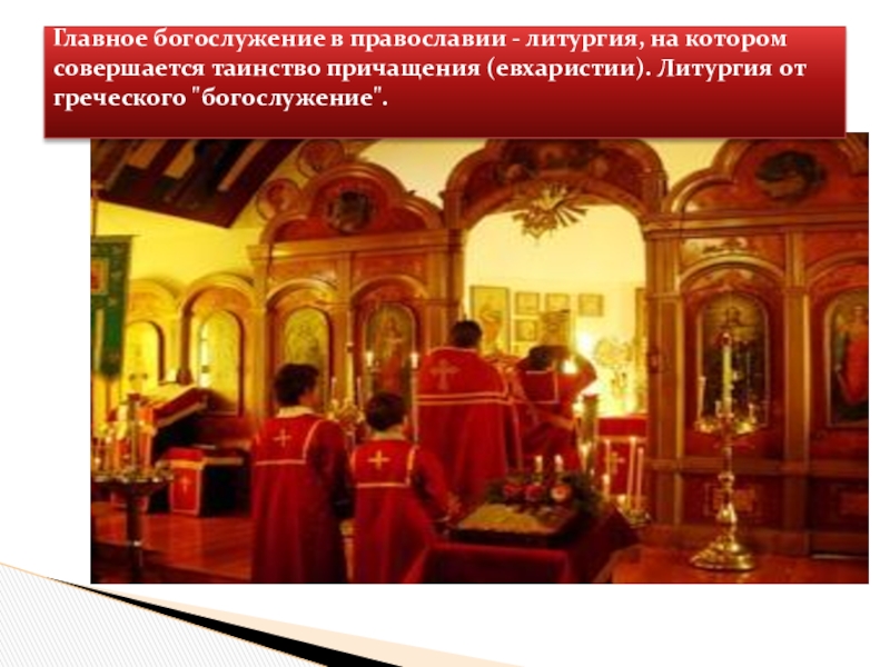 Главное богослужение в православии - литургия, на котором совершается таинство причащения