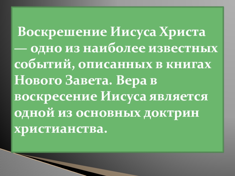 Слайд 14 Воскрешение Иисуса Христа — одно из наиболее известных событий, описанных