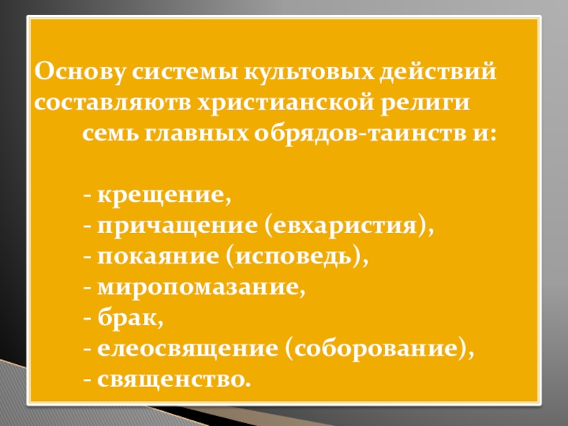 Основу системы культовых действий составляютв христианской религи