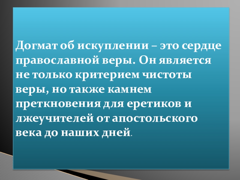 Слайд 12Догмат об искуплении – это сердце православной веры. Он является не