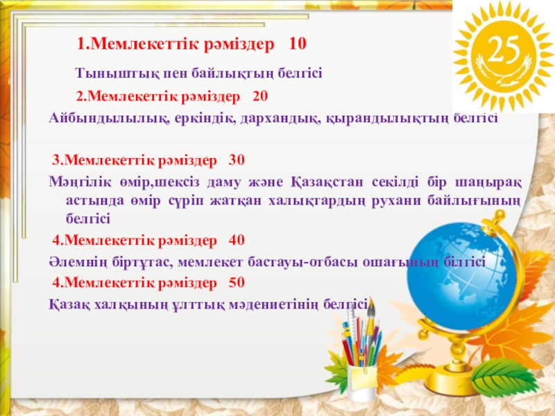 Мемлекеттік рәміздер 10 20 30 40 50