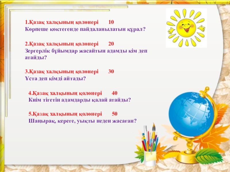 Қазақ халқының қолөнері 10 20 30 40 50