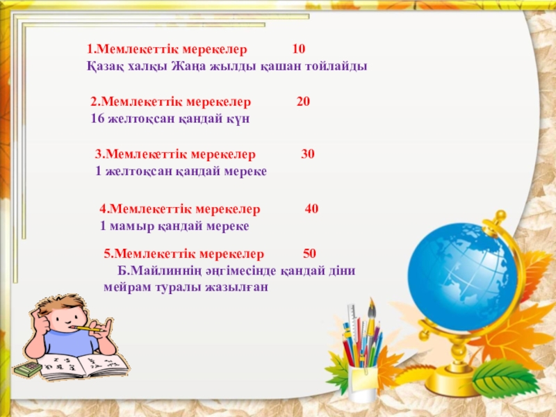 Мемлекеттік мерекелер 10 20 30 40 50