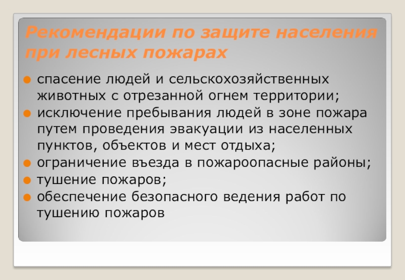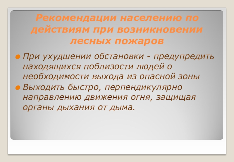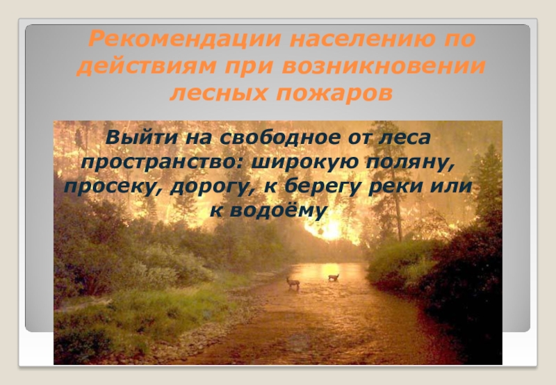Слайд 19Рекомендации населению по действиям при возникновении лесных пожаров