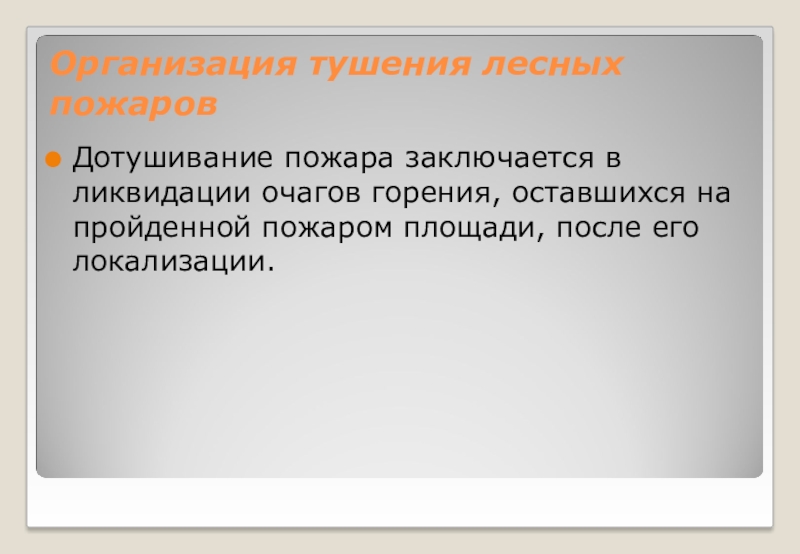 Дотушивание пожара заключается в ликвидации очагов горения,