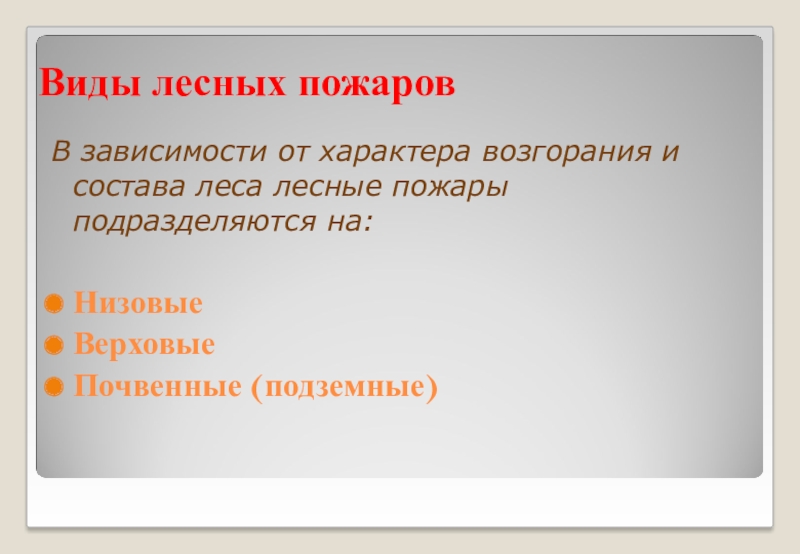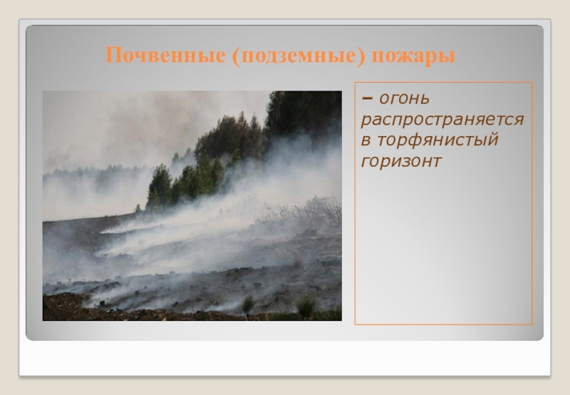Слабым почвенным (подземным) пожаром считается такой, у которого глубина