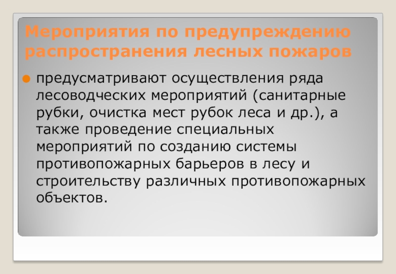 Слайд 22Мероприятия по предупреждению распространения лесных пожаров