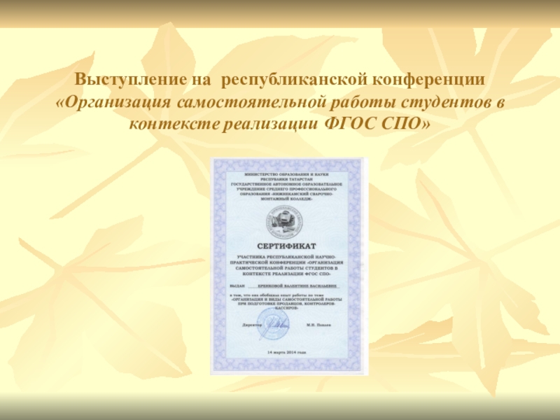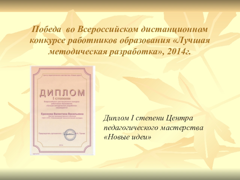 Участие во Всероссийском дистанционном конкурсе с международным участием «Лучшая методическая разработка», 2014г.