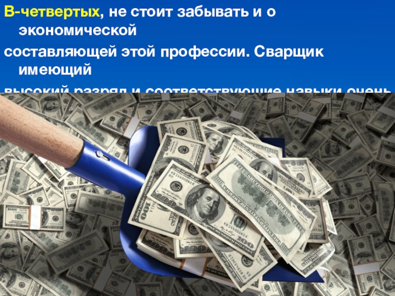 В-четвертых, не стоит забывать и о экономической составляющей этой профессии. Сварщик имеющий высокий разряд и соответствующие навыки
