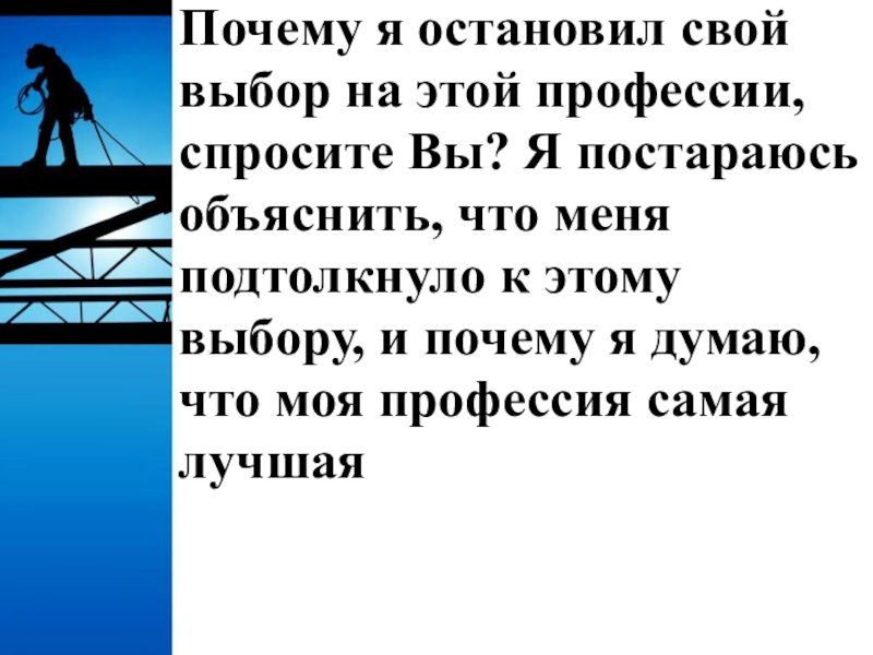 Слайд 9Именно поэтому я считаю, что моя профессия