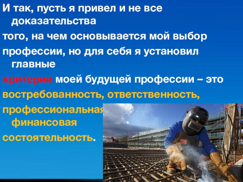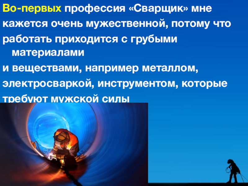 Слайд 4Во-первых профессия «Сварщик» мне