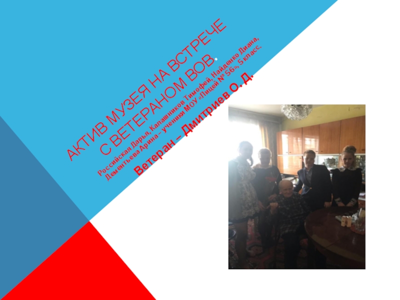 Слайд 13Актив музея на встрече с ветераном Вов.