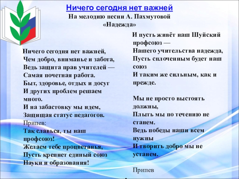 И пусть живёт наш Шуйский профсоюз —
