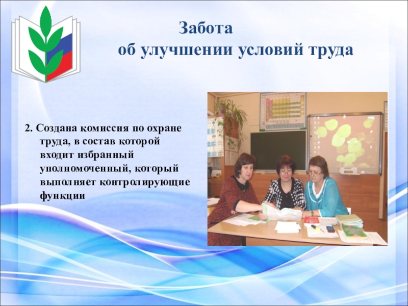 2. Создана комиссия по охране труда, в состав которой входит избранный уполномоченный, который выполняет контролирующие функции
