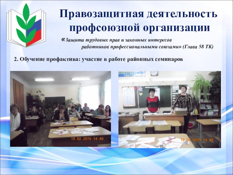 2. Обучение профактива: участие в работе районных семинаров