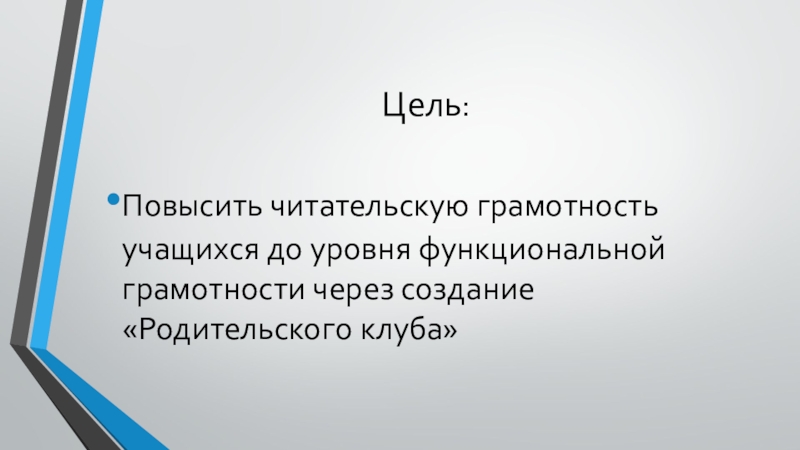 Цель:Повысить читательскую грамотность учащихся до уровня функциональной грамотности через создание «Родительского клуба»