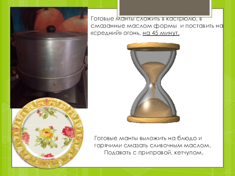 Готовые манты выложить на блюдо и горячими смазать сливочным маслом.
