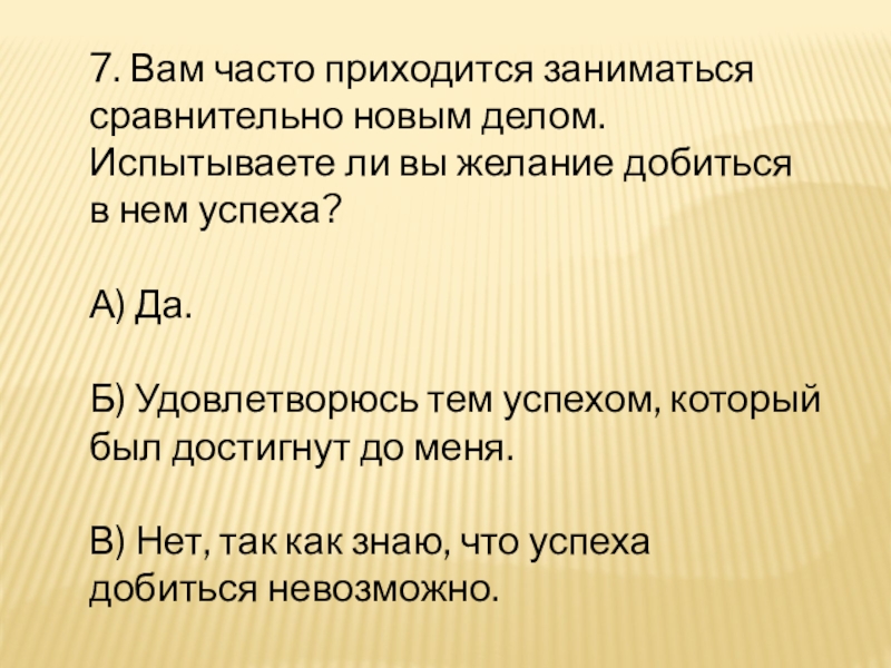 Слайд 107. Вам часто приходится заниматься сравнительно новым делом. Испытываете ли вы