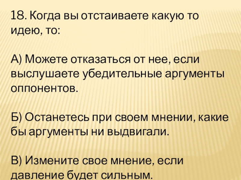 Слайд 2118. Когда вы отстаиваете какую то идею, то: