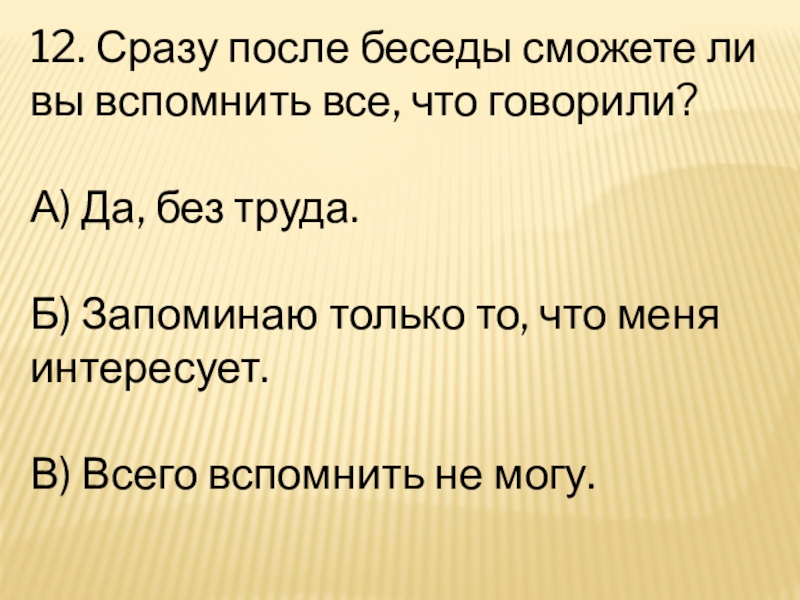 Слайд 1512. Сразу после беседы сможете ли вы вспомнить все, что говорили?
