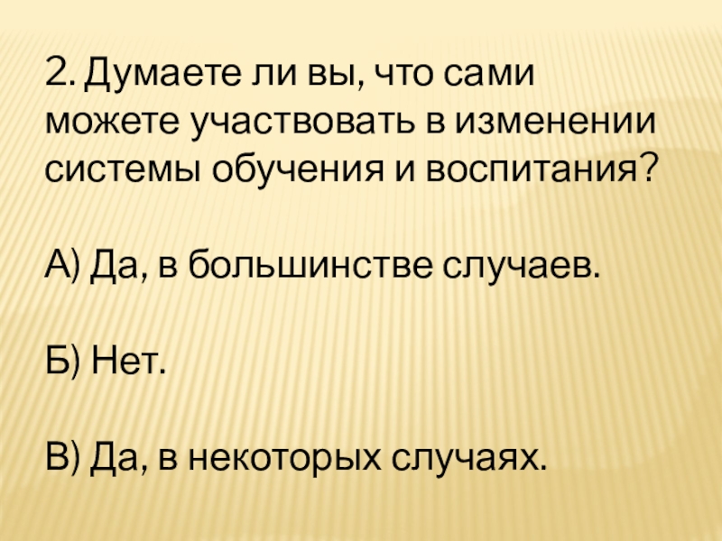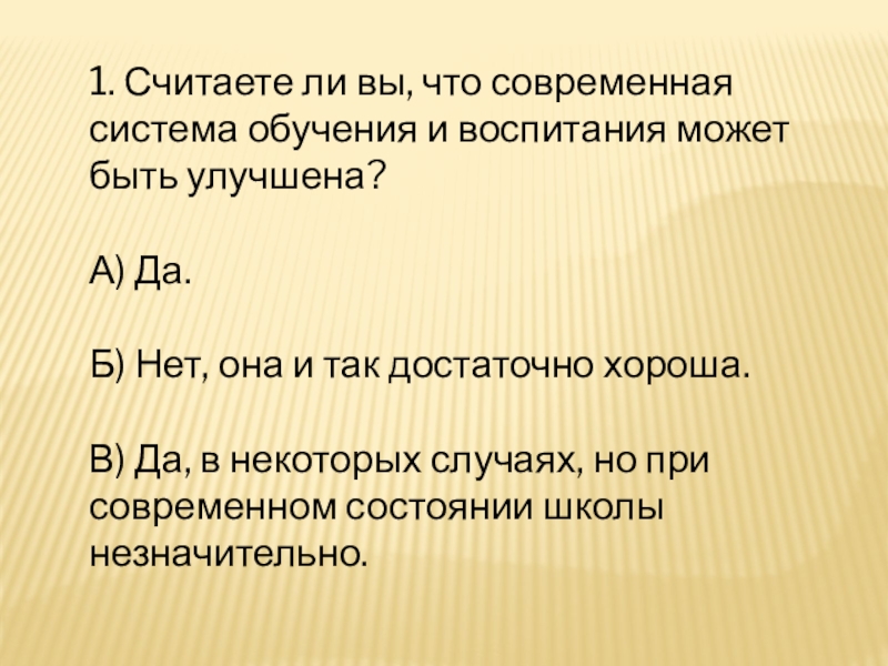 Слайд 41. Считаете ли вы, что современная система обучения и воспитания может