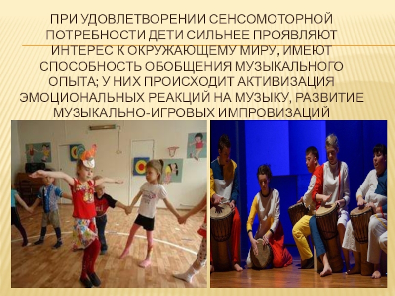 имеют способность обобщения музыкального опыта; у них происходит активизация эмоциональных реакций на музыку, развитие музыкально-игровых импровизаций