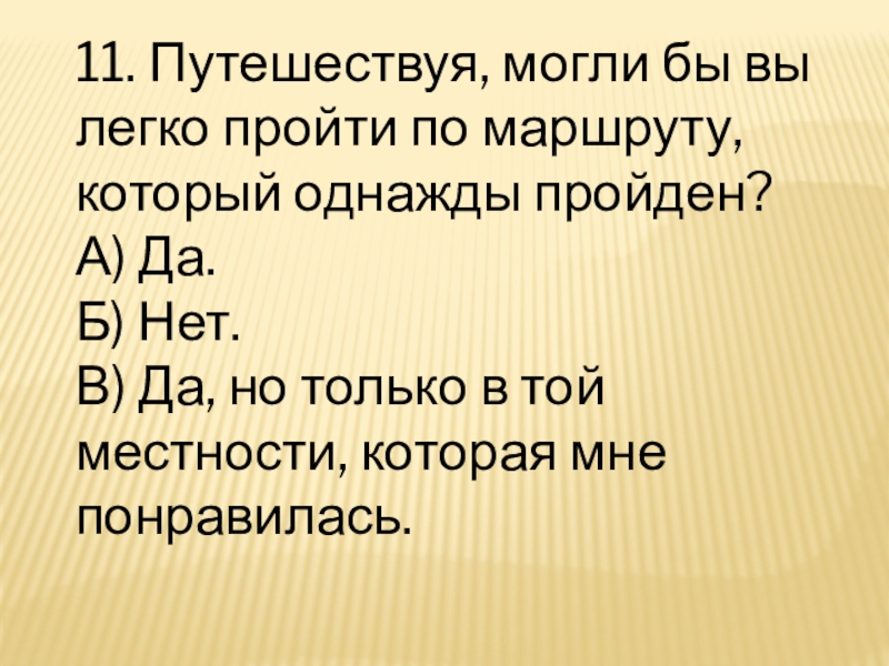 Слайд 1411. Путешествуя, могли бы вы легко пройти по маршруту, который однажды