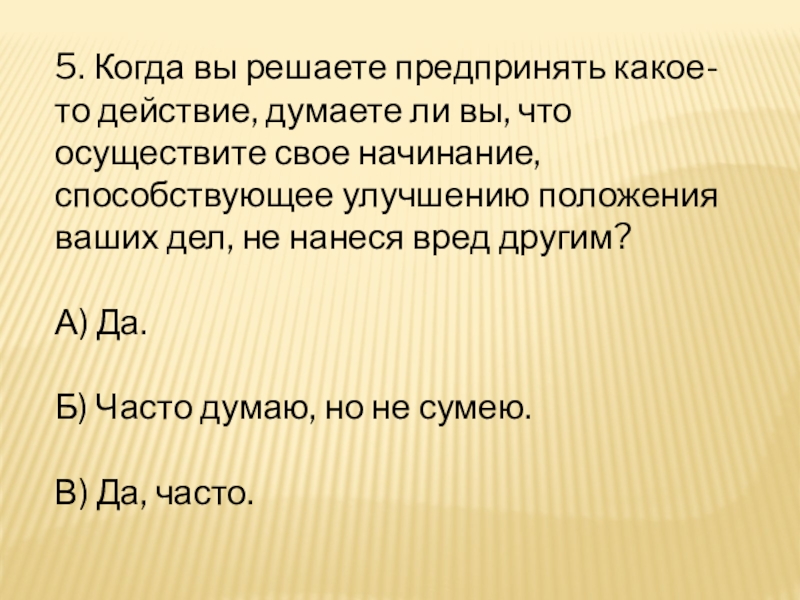 Слайд 85. Когда вы решаете предпринять какое-то действие, думаете ли вы, что