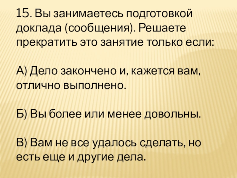 Слайд 1815. Вы занимаетесь подготовкой доклада (сообщения). Решаете прекратить это занятие только