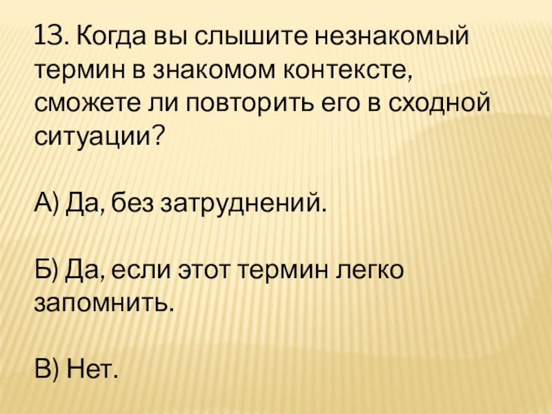 Слайд 1613. Когда вы слышите незнакомый термин в знакомом контексте, сможете ли